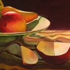 Clockwise from top left: Pears and Cherries; Pears; Glass Apple...
